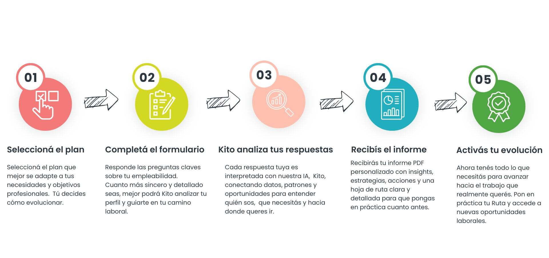 Hoy, nos convertimos en tu GPS de empleabilidad: una herramienta inteligente que analiza tu perfil y te guía paso a paso para que construyas el futuro profesional que deseás.A través de un diagnóstico completo, de tan solo 15 minutos, te ayudamos a descubrir en qué punto estás, hacia dónde querés ir y qué necesitás hacer para avanzar en el mercado laboral. Sin vueltas, sin fórmulas mágicas: con datos reales, acciones concretas y el foco puesto en vos.Quien te acompaña en esta evolución es KITO, tu GPS personal.Somos más que una plataforma.