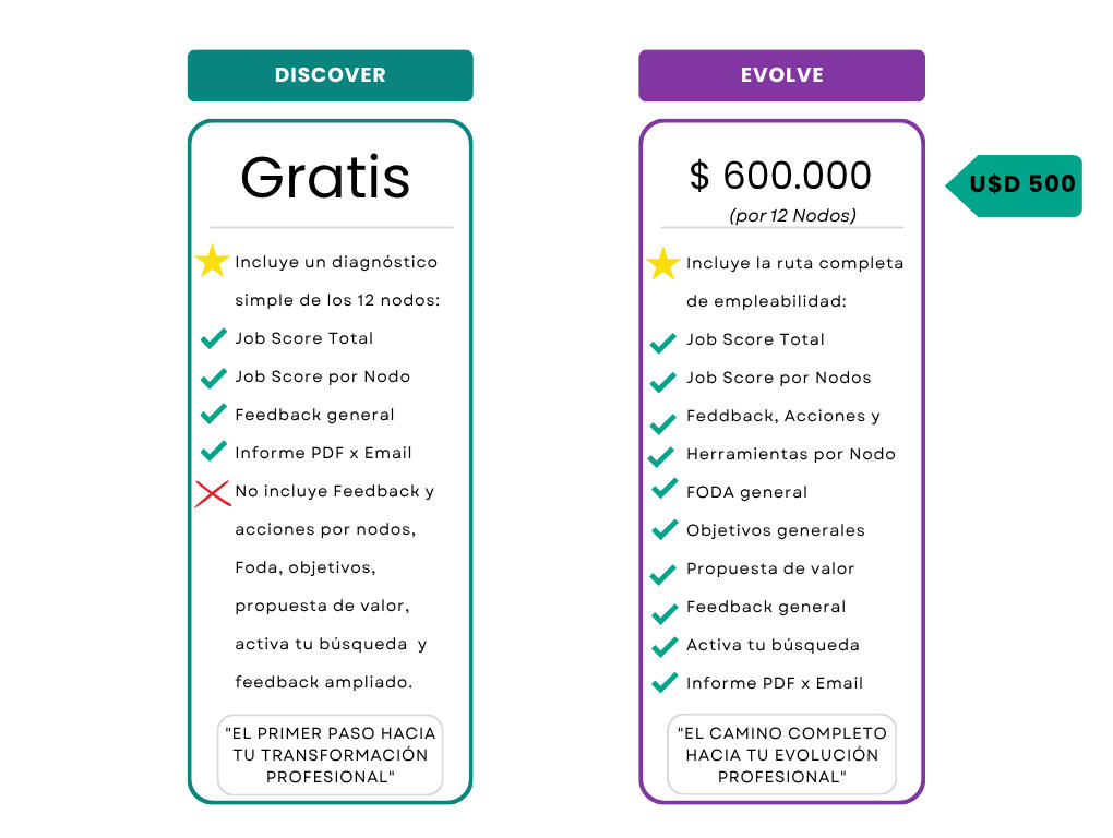 Hemos diseñado dos planes personalizados que se adaptan a tus necesidades, desde un primer diagnóstico gratuito hasta un plan de empleabilidad completo. Vos decidís por dónde empezar.